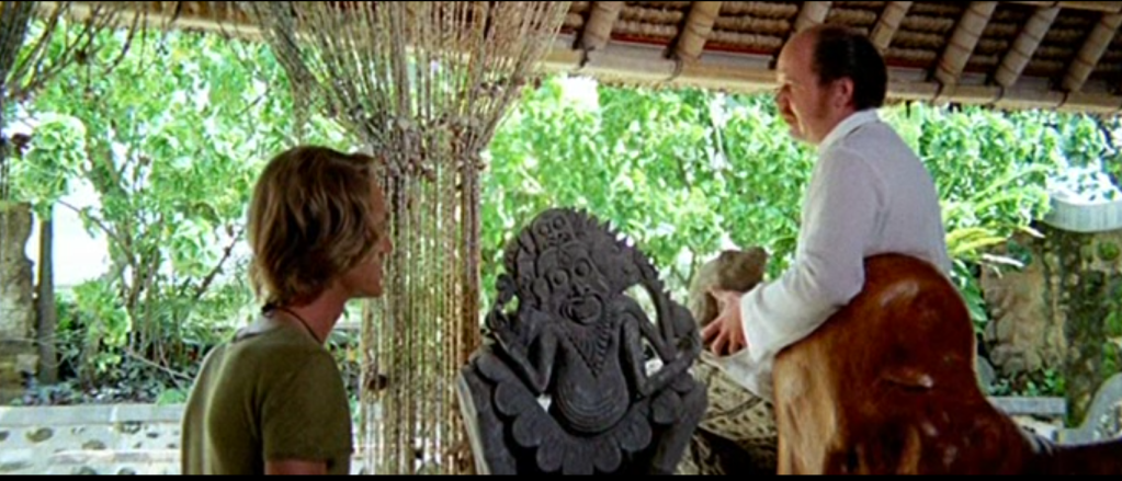 Vodič na Baliju je Glen, obrazovani istraživač širokih shvatanja koji pokušava da dokuči tajnu koja se krije iza mističnih vjerovanja mještana. On i Carlo predstavljaju dva polariteta i kroz njih sagledavamo odnos Zapada prema Istočnjačkoj civilizaciji.